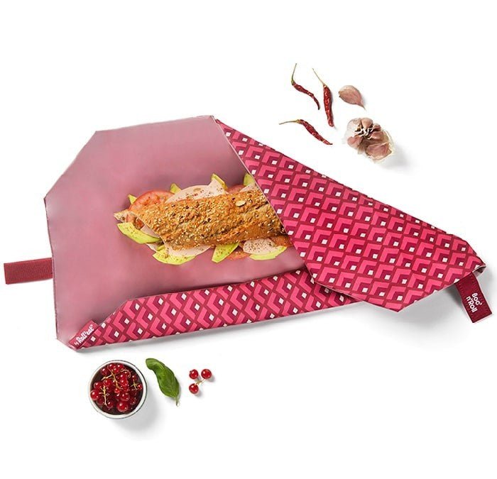 El porta entrepans reutilitzable, ajustable, plegable, rentable i indispensable. Adéu als embolcalls d'un sol ús. Aquest és el teu porta entrepans ecològic per menjar fora de casa. El tancament fàcil l'ajusta a qualsevol aliment (sandvitx, fruita…). És molt pràctic, lleuger, rentable i serveix de tovalles. Perquè ho puguis reutilitzar i regaudir.