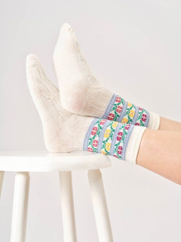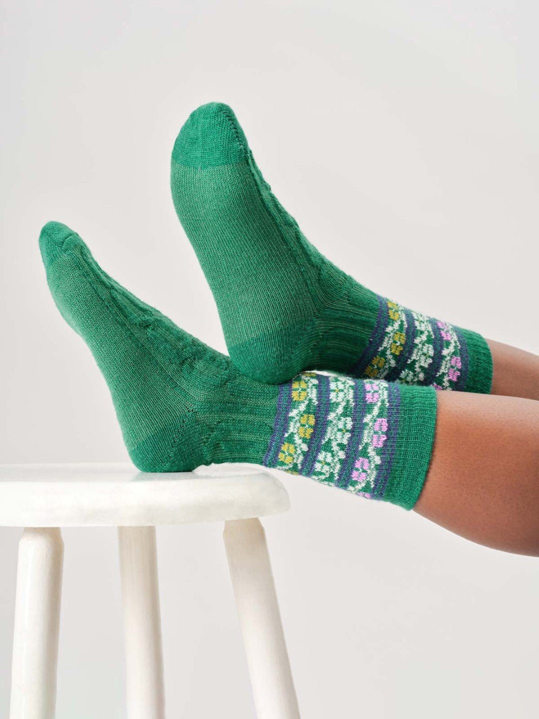 Calcetines de lana con diseño floral.