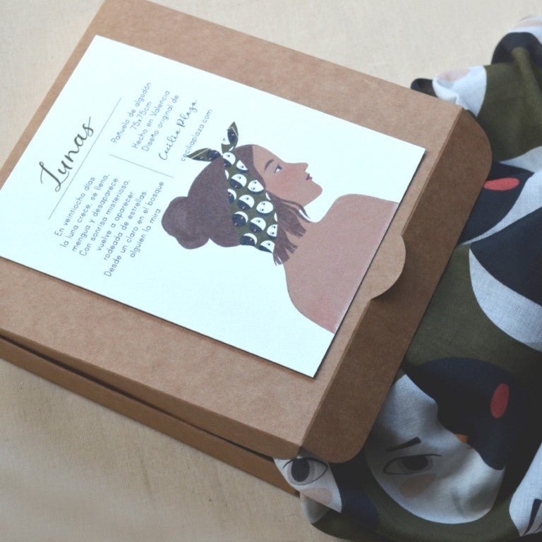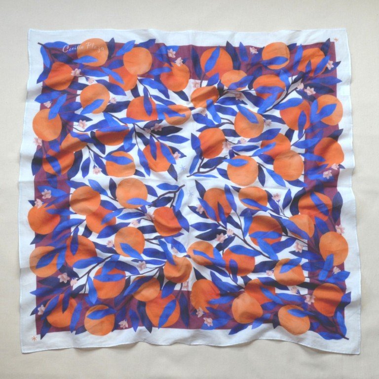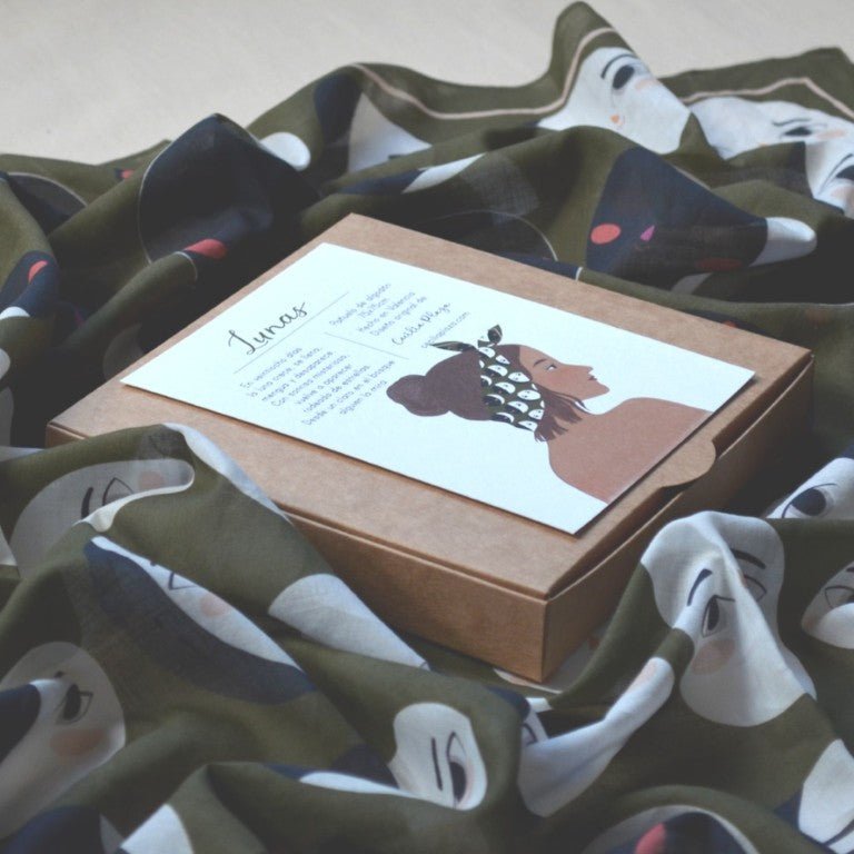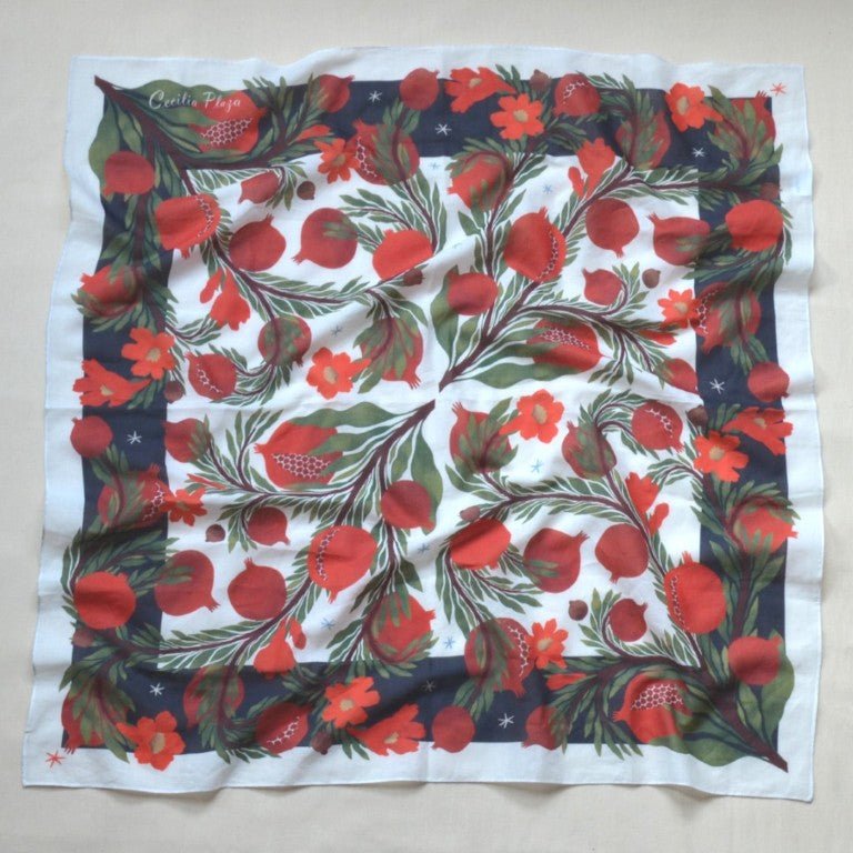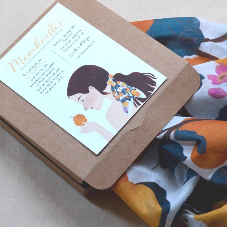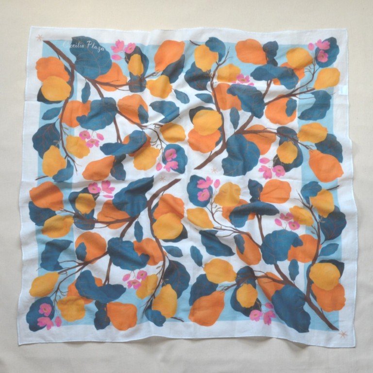 Mocador de cotó amb il·lustració original de Cecilia Plaza.