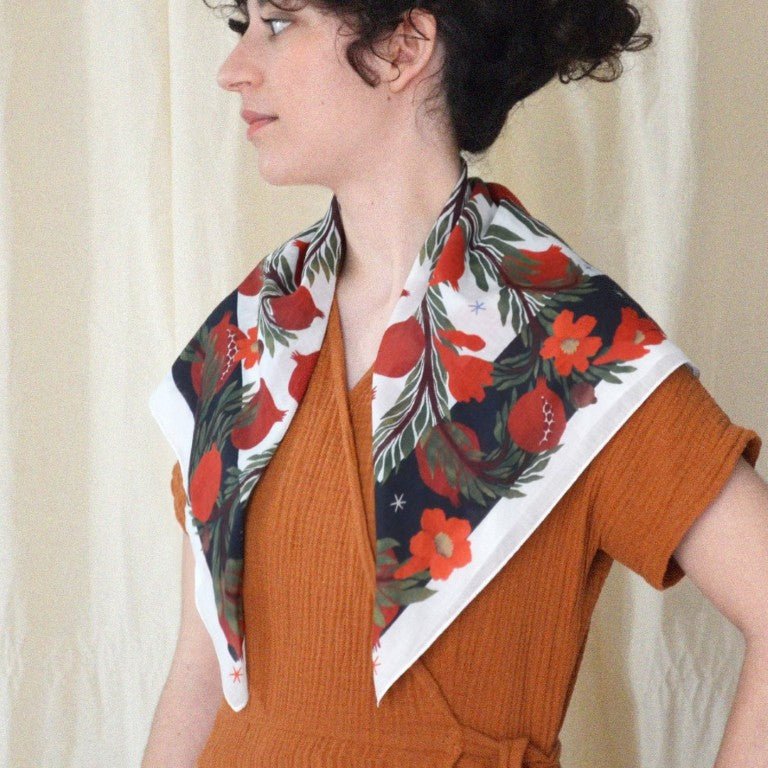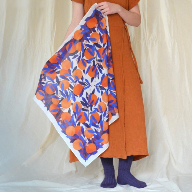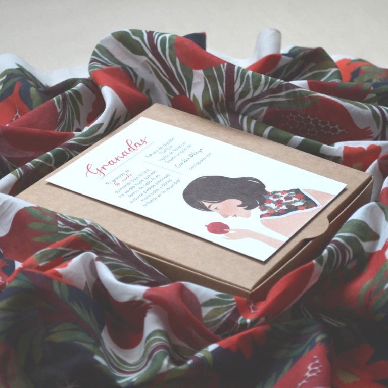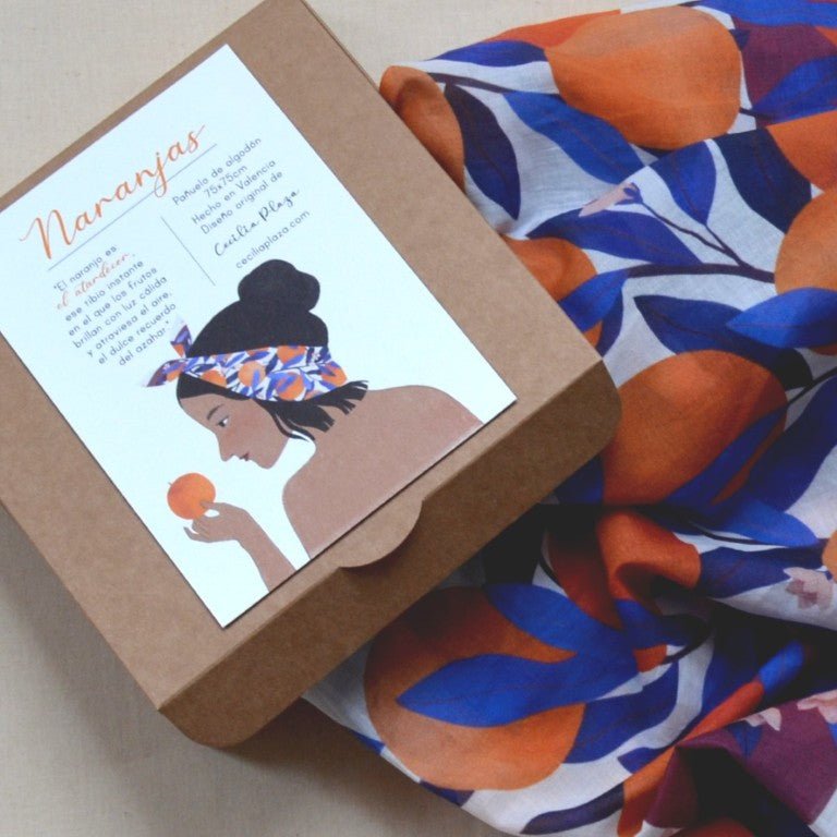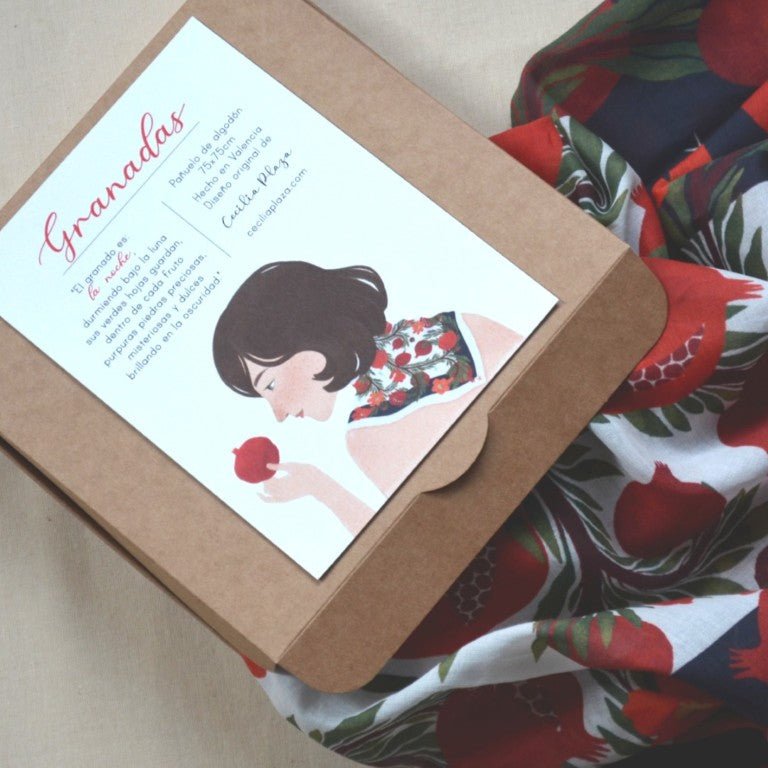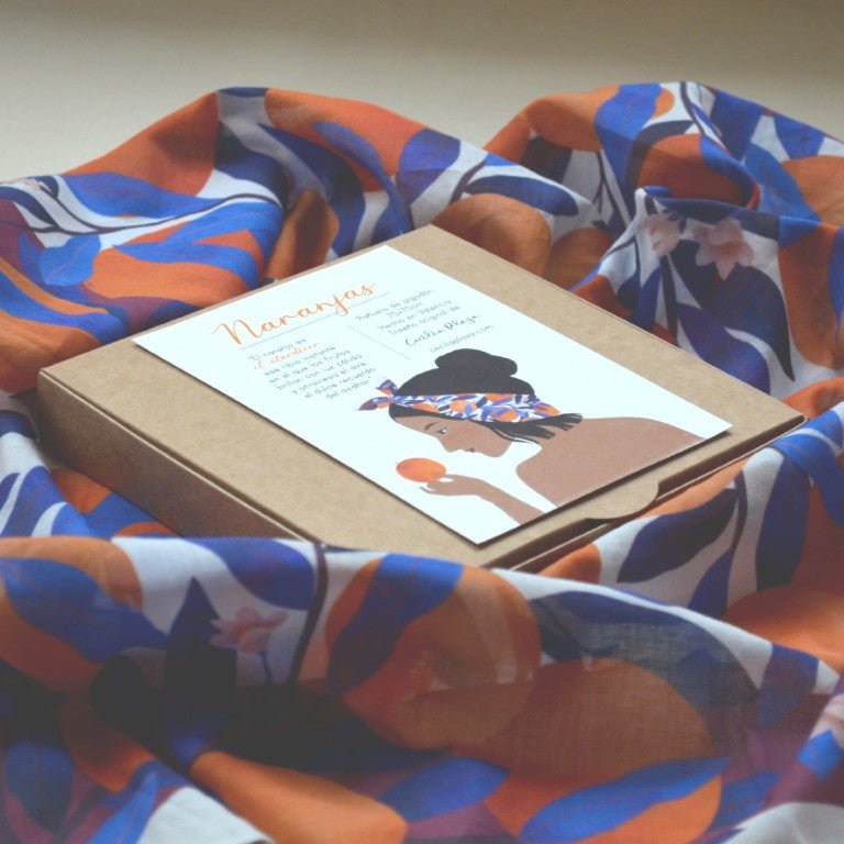 Mocador de cotó amb il·lustració original de Cecilia Plaza.