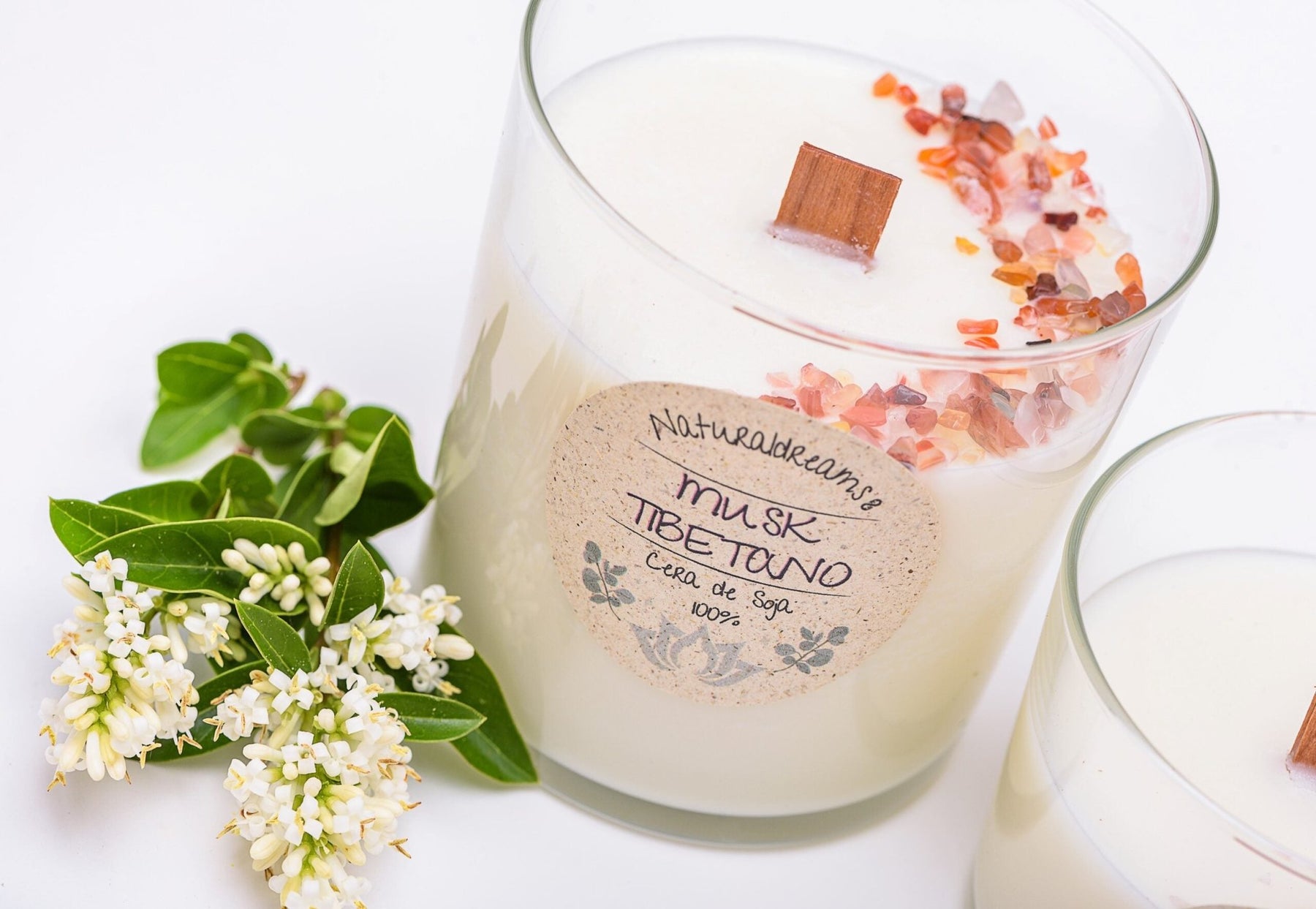 Les espelmes aromàtiques de cera de soja són ecològiques i elaborades una per una de forma artesanal. Desprenen una olor refrescant, purificant. En comparació amb les espelmes corrents de parafina, les de cera de soja duren molt més i la seva composició natural afavoreix la salut i un món més sostenible. Les seves qualitats que en fan una espelma única.