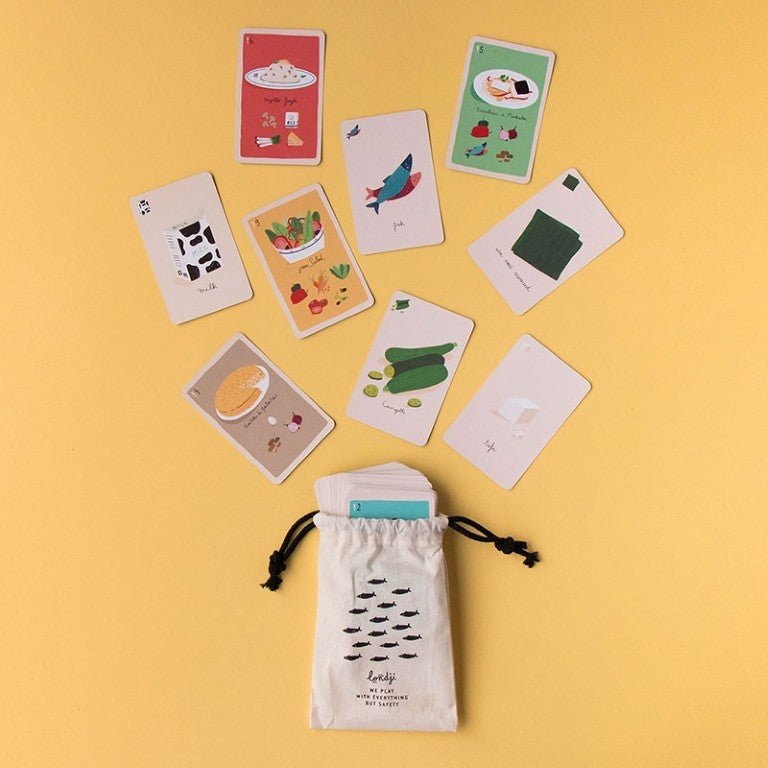 El juego incluye 17 cartas de recetas con platos de todo el mundo y 63 cartas de ingredientes.