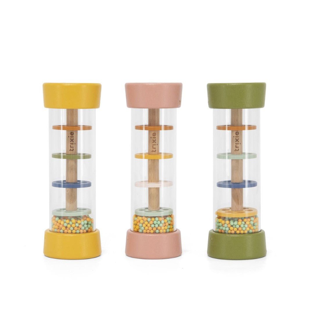 ¿Acaso está lloviendo? ¡Oh! ¡Es el nuevo palo de lluvia para tu bebé! Su animal favorito viene con unas bonitas cuentas que giran y caen a través de unos discos de colores, creando un relajante sonido similar al de la lluvia y mucho movimiento para estimular sus sentidos. Hoy puede ser un sonajero, mañana un instrumento musical... Este juguete crecerá con tu pequeño.